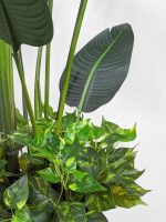 Name: Giant Bird of Paradise in black fiber pot covered with pothos plant