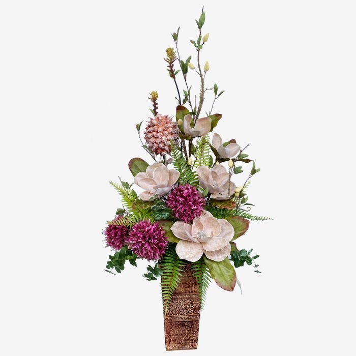 Home All Products Tall Artificial flower arrangement with wooden pot